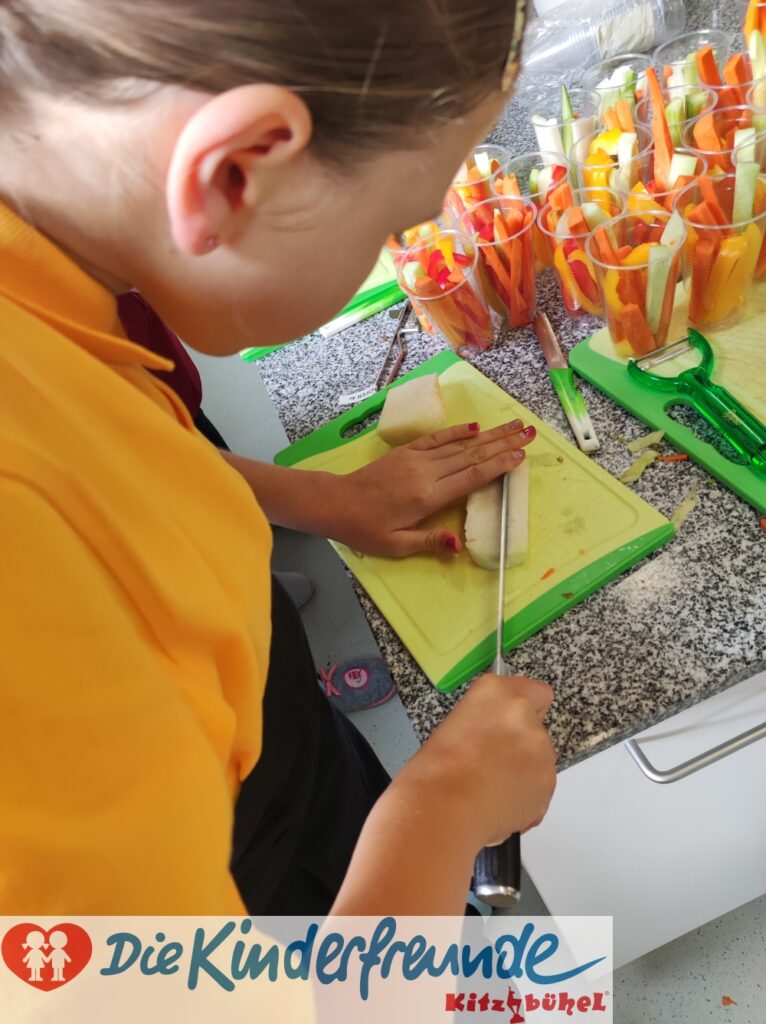 Schon ab 9:30 Uhr waren die kleinen Köchinnen und Köche fleißig am Werk. Das Ziel: ein leckeres Picknick für die ganze Familie vorzubereiten. Unter Anleitung der ehrenamtlichen Helferinnen der Kinderfreunde wurde geschnippelt, gerührt und gebacken, was das Zeug hält. Der Vormittag stand ganz im Zeichen des gemeinsamen Schaffens, bei dem die Kinder spielerisch den Umgang mit Lebensmitteln lernten und ihre kulinarische Kreativität ausleben konnten.