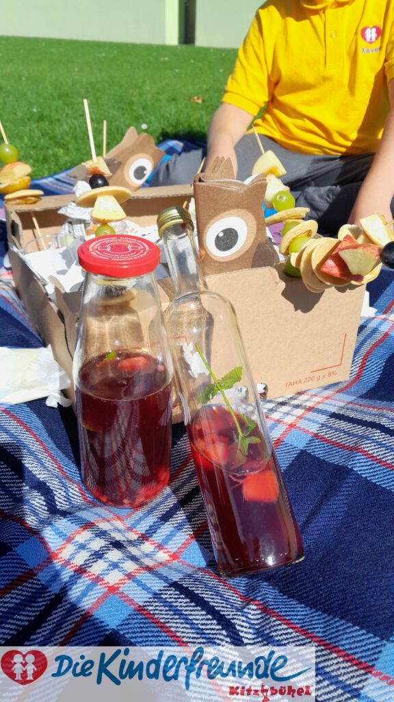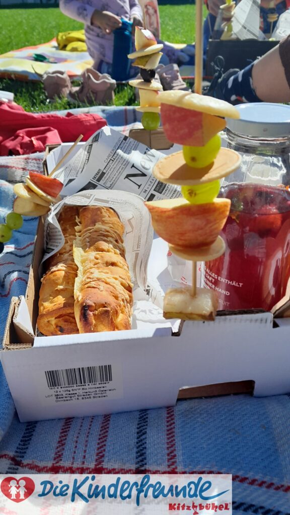 Pünktlich um 11:30 Uhr war es dann so weit: Mit den prall gefüllten Picknickboxen zogen alle Teilnehmerinnen und Teilnehmer mit ihren Familien auf die Wiese vor der Mittelschule, wo die selbstgemachten Köstlichkeiten an der frischen Luft gemeinsam verspeist wurden.